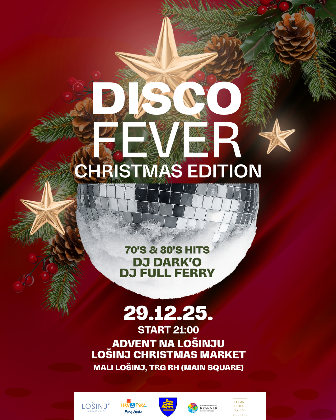 Expect the greatest disco hits of the 70s and 80s, retro groove, festive sparkle and an energy that will warm up the atmosphere and bring extra life to Lošinj’s Advent days.