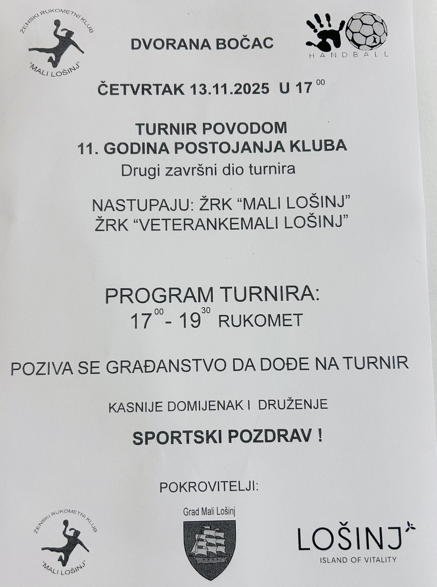Lokacija: Mali Lošinj, sportska dvorana Bočac