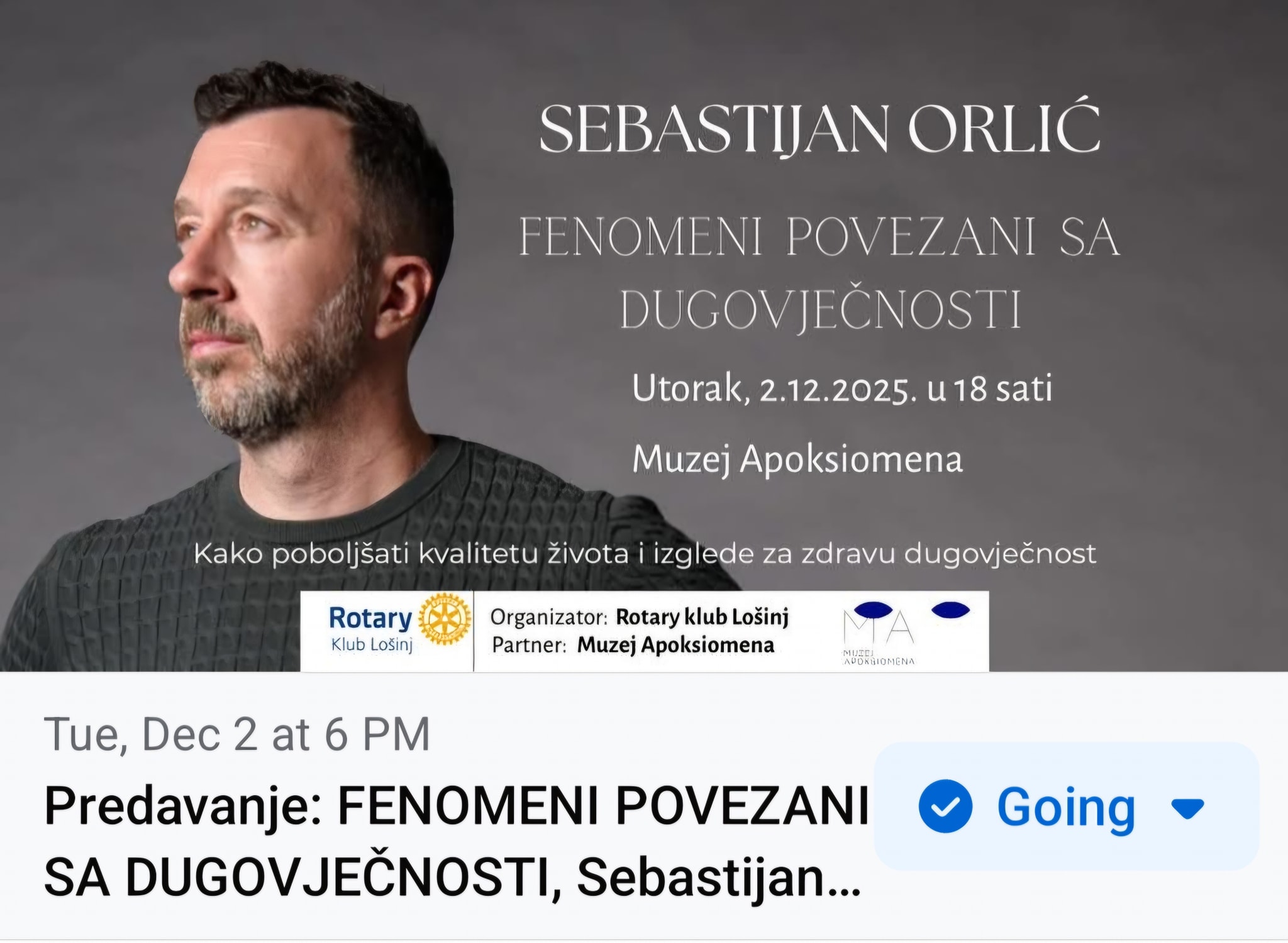 Tema predavanja: Fenomeni povezani sa dugovječnosti, analizira i predstavlja što nam znanost, na temu dugovječnosti, sugerira za poboljšanje kvalitete života i izglede za zdravu dugovječnost.