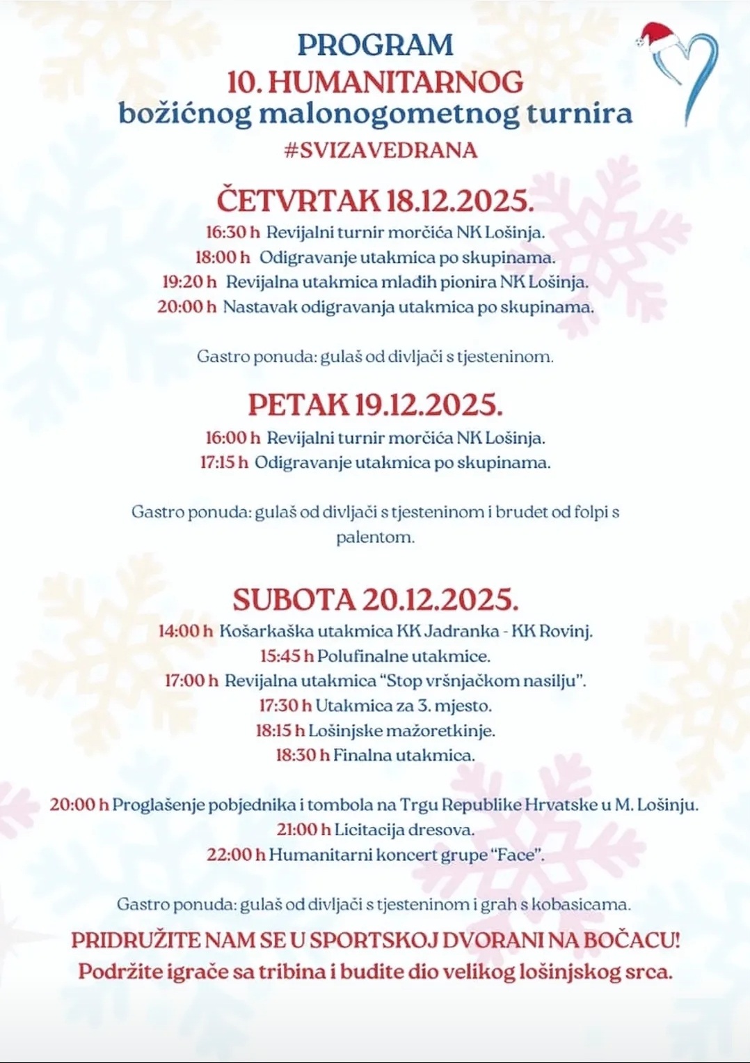 Humanitarni božićni malonogometni turnir, Mali Lošinj, Sportska dvorana Bočac