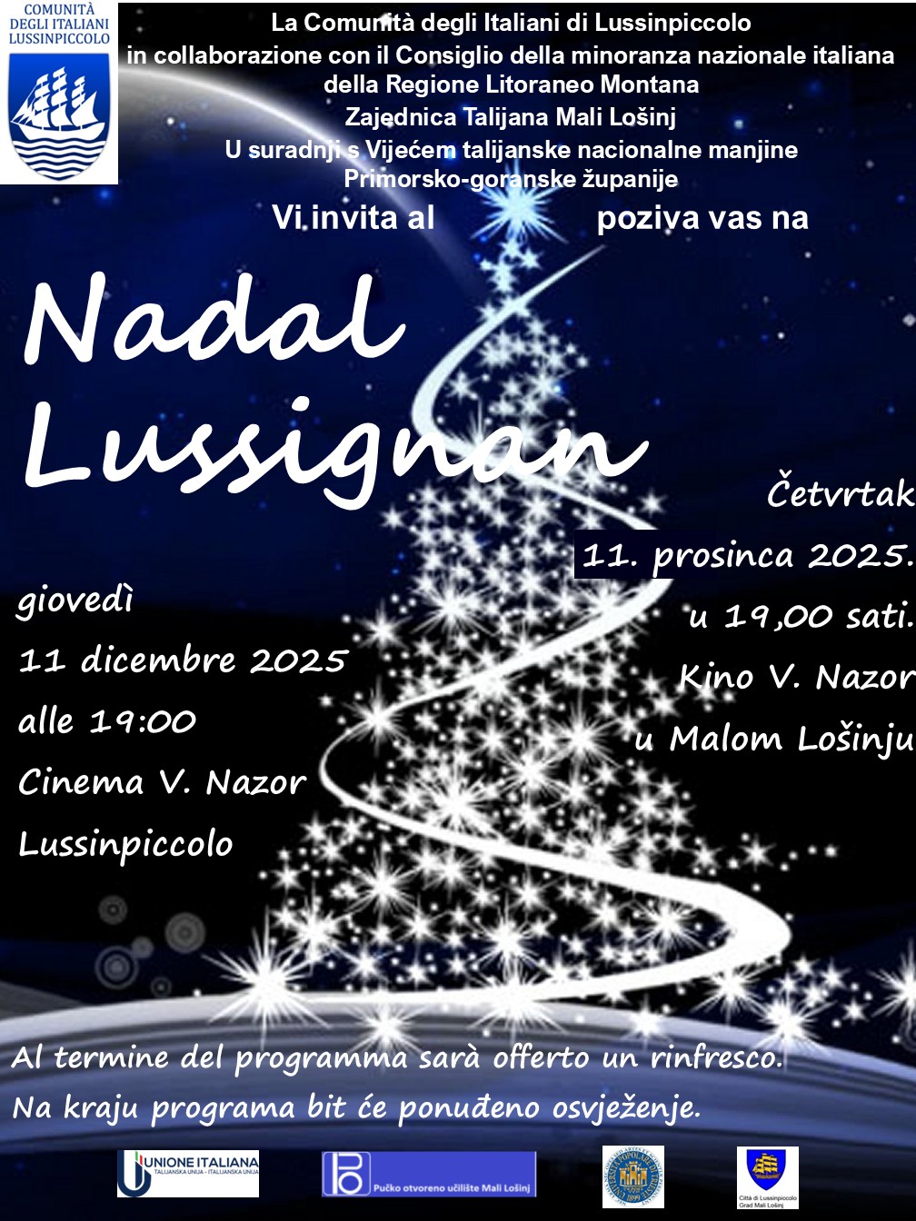 Zajednica Talijana Mali Lošinj poziva na koncert na malološinjskom trgu "Lošinjski Božić 2025"!
