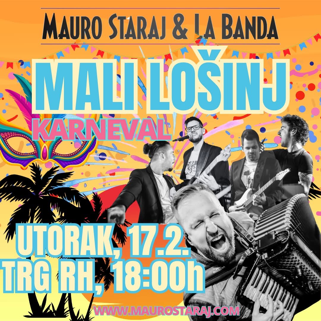 Nakon Dječje karnevalske povorke u jutarnjim satima (10 sati), otočani i zaljubljenici u maškare u utorak 17. veljače 2026., sastat će na Budovini (Mali Lošinj) s početkom povorke u 15:00 sati i zamaškarat naš lijepi grad!