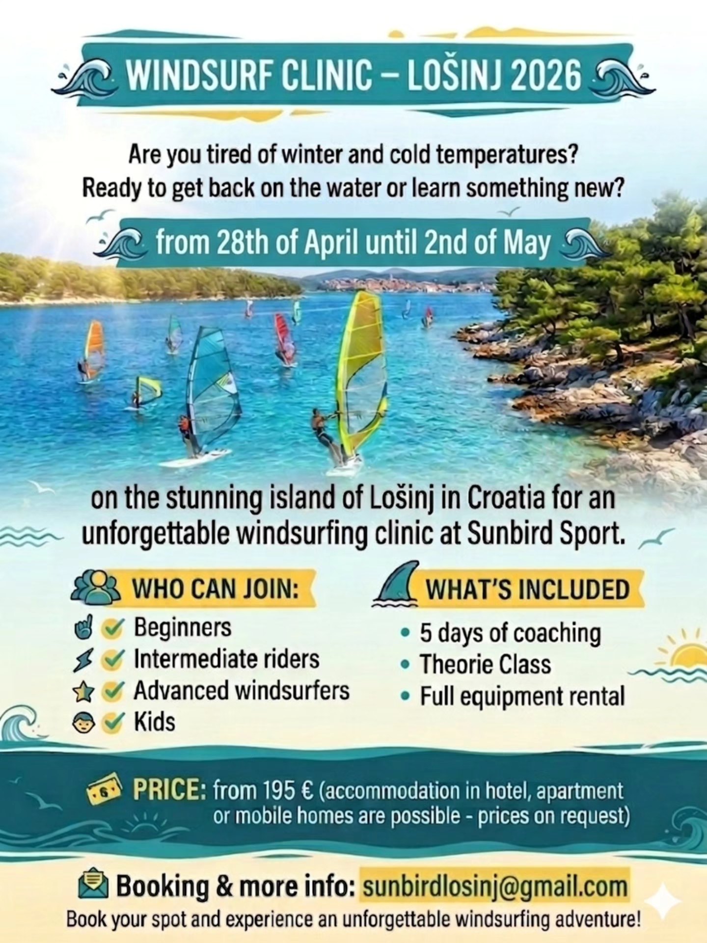 Il windsurf viene proposto attraverso un corso prova di 3 giorni oppure un corso base di 5 giorni. Per chi ha già esperienza, è disponibile anche un corso avanzato della durata di 4 giorni. È inoltre possibile organizzare lezioni private direttamente presso il centro.