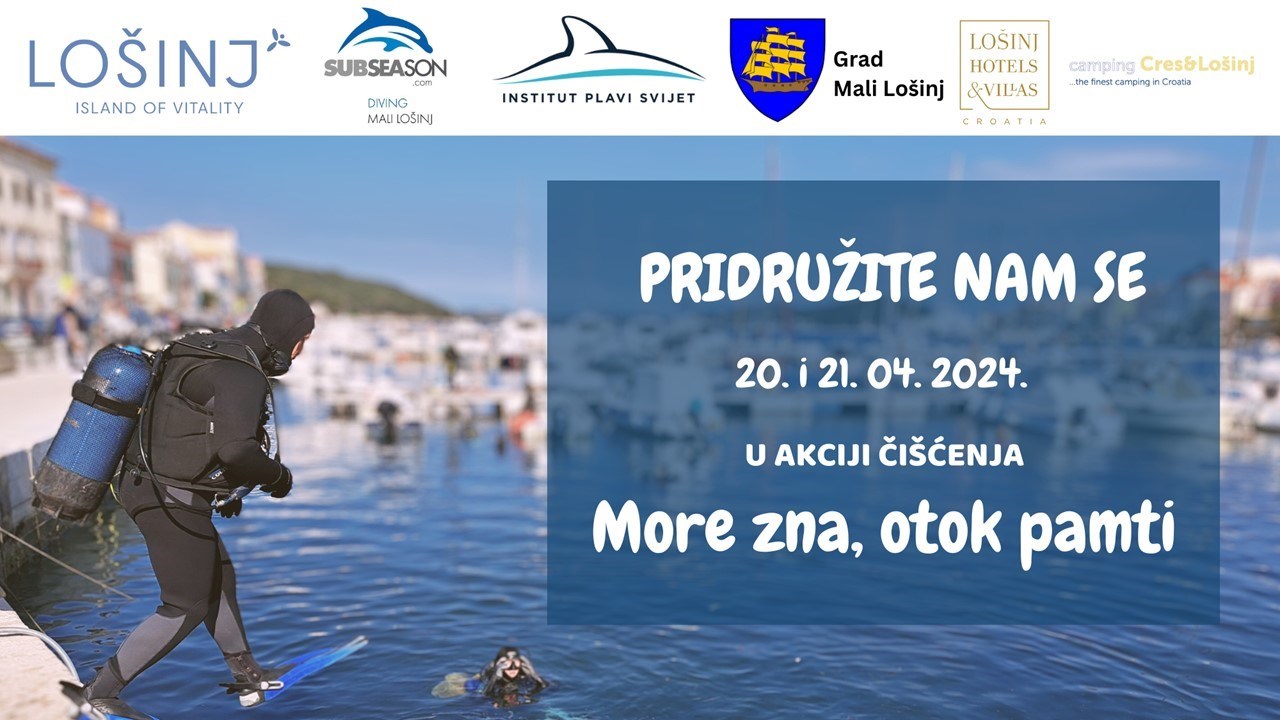 Na otoku Lošinju bo od 10 do 12. aprila 2026 potekala eko-akcija čiščenja obale in morja pod imenom "Morje ve, otok pomni".